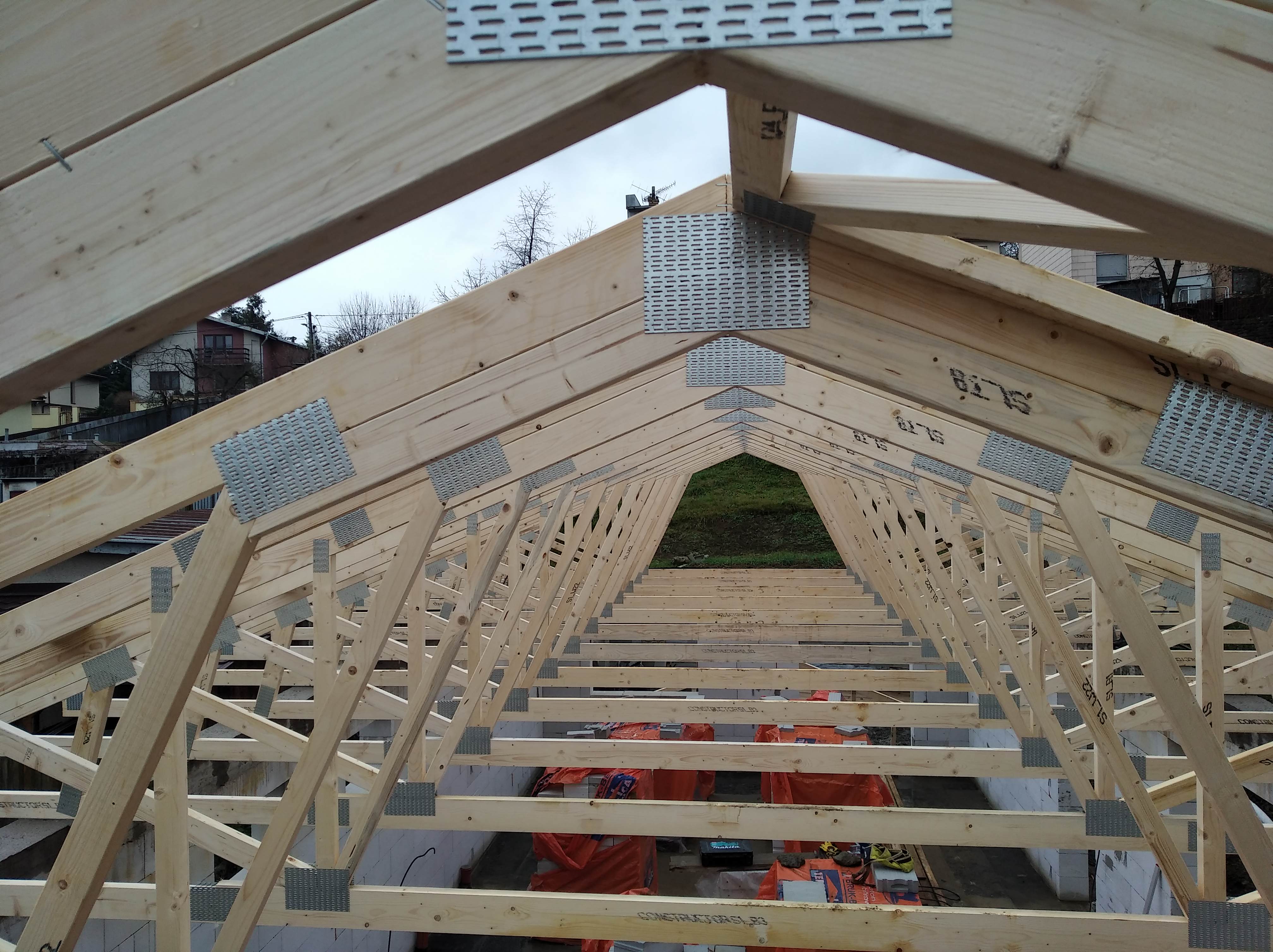 Výroba, dodávka a montáž väzníkového krovu z C24